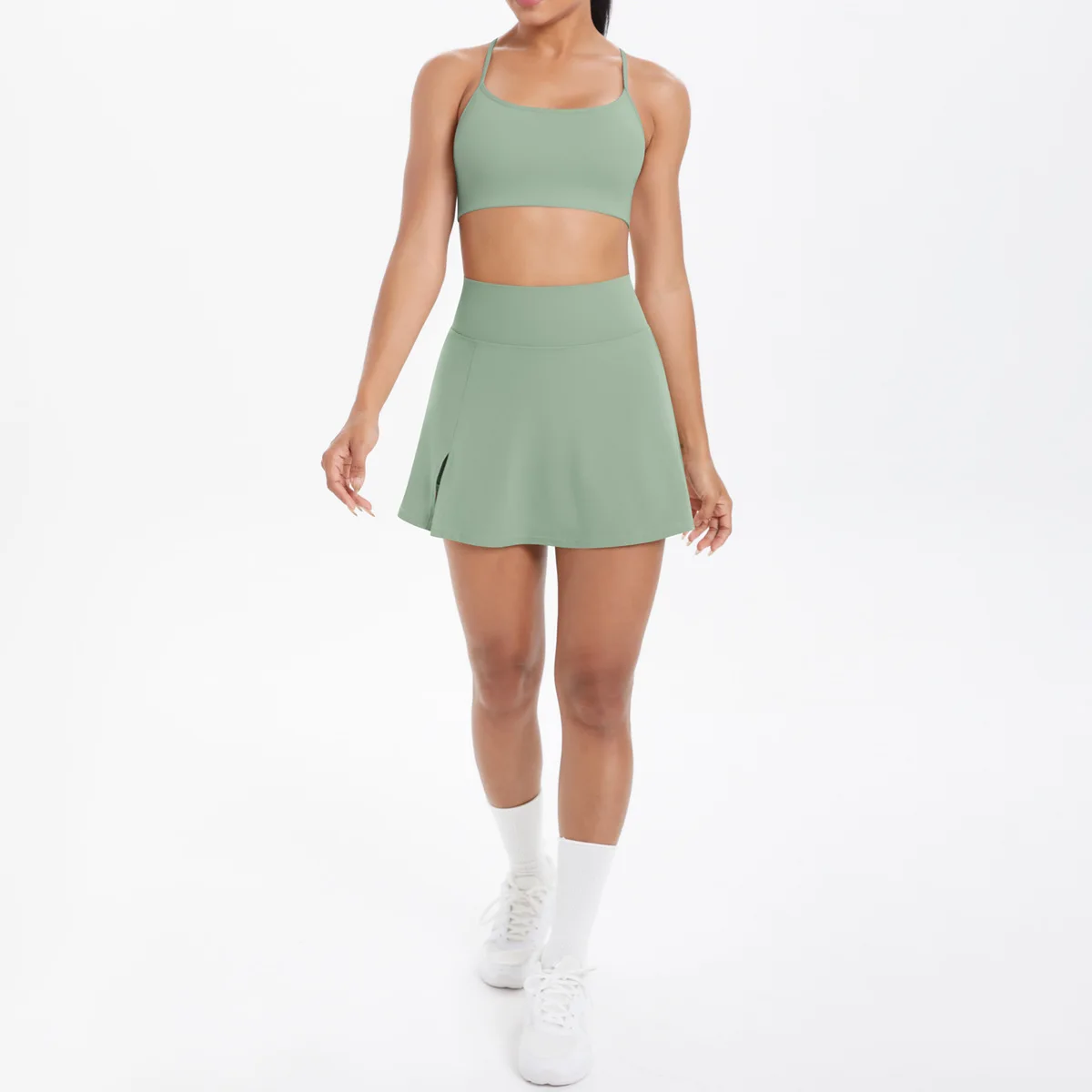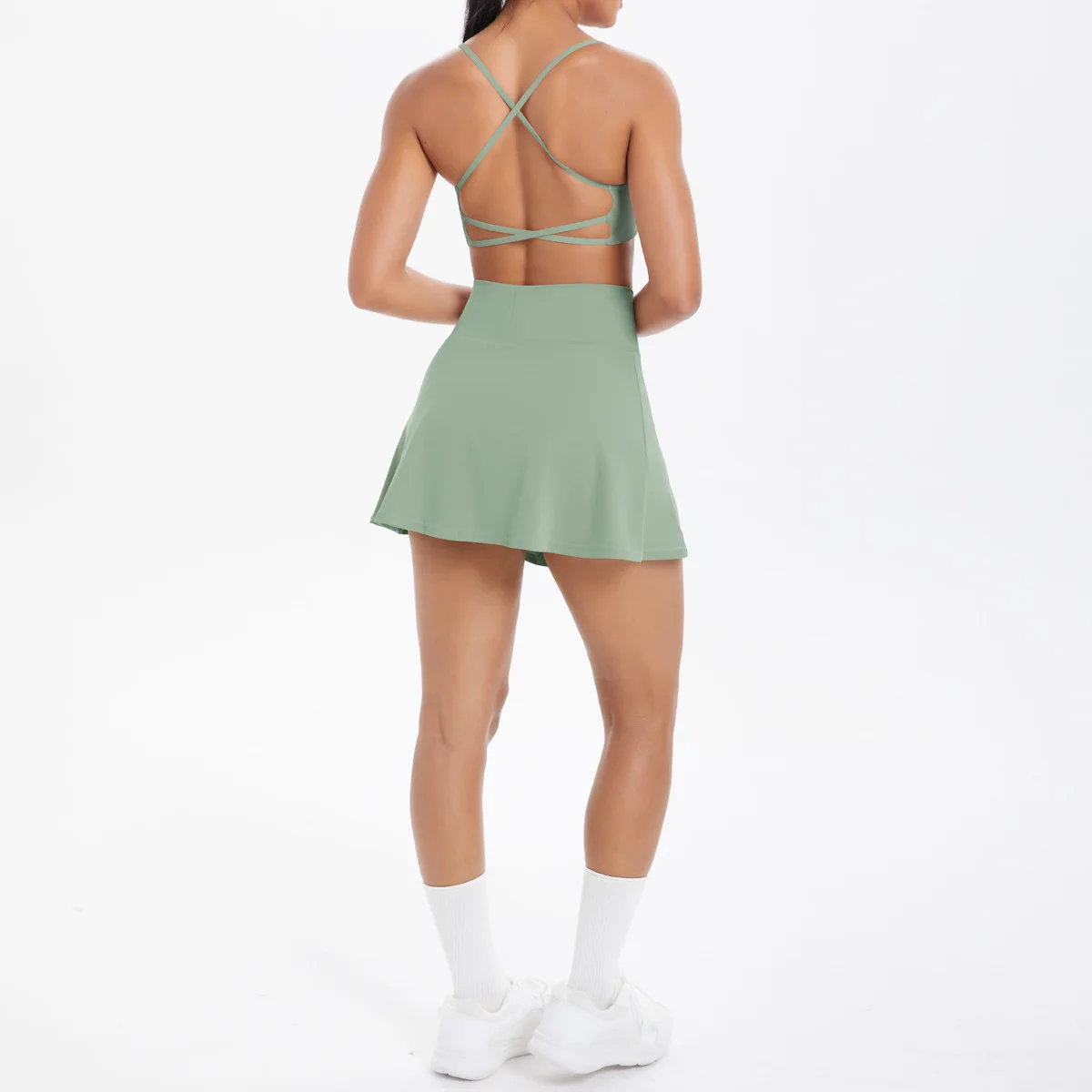 News 10 Colors in Stock Backless Bra Tennis Skirt Yoga Clothes Set Yoga Skirt Double-layer Yoga Shorts